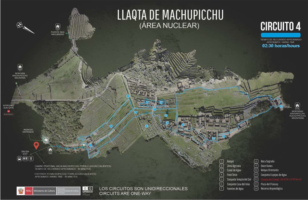 Circuit 1 :🌄 Vue panoramique🚶♂️ Temps de parcours : 2h🏞 Inclus : Maison du Gardien, Porte Principale, Observatoire du Temple du SoleilParfait pour les visiteurs cherchant à capturer la photo classique de Machu Picchu, ce circuit de 2 heures mène aux points d'intérêt principaux, dont la Casa del Guardián et le Temple du Soleil. Idéal pour une première visite, il est accessible avec le billet "Llaqta Machu Picchu" combiné au Puente Inka.