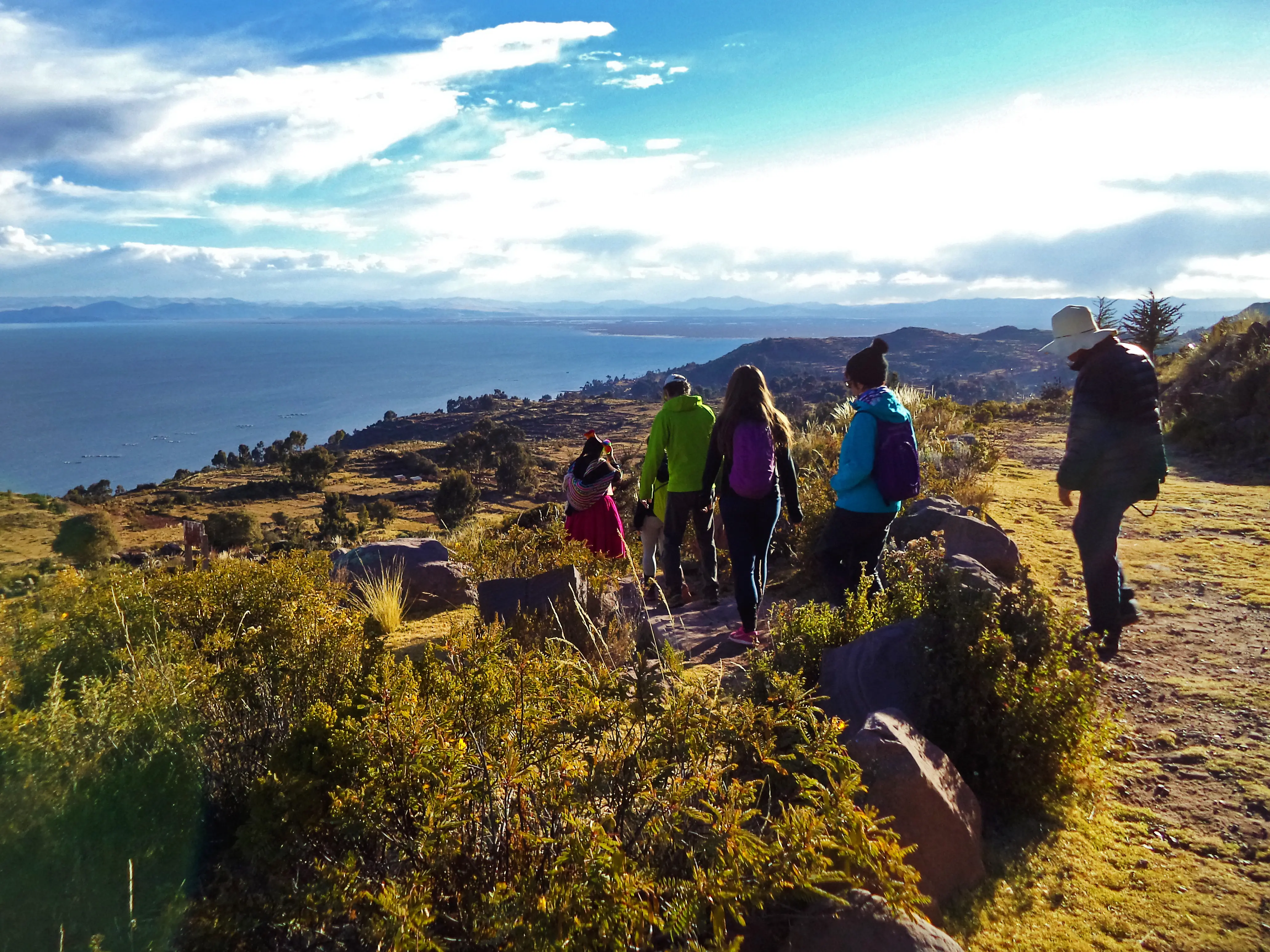 Descente par l’autre versant de l’île, puis retour vers Puno en bateau (environ 3h) dans l’après-midi.